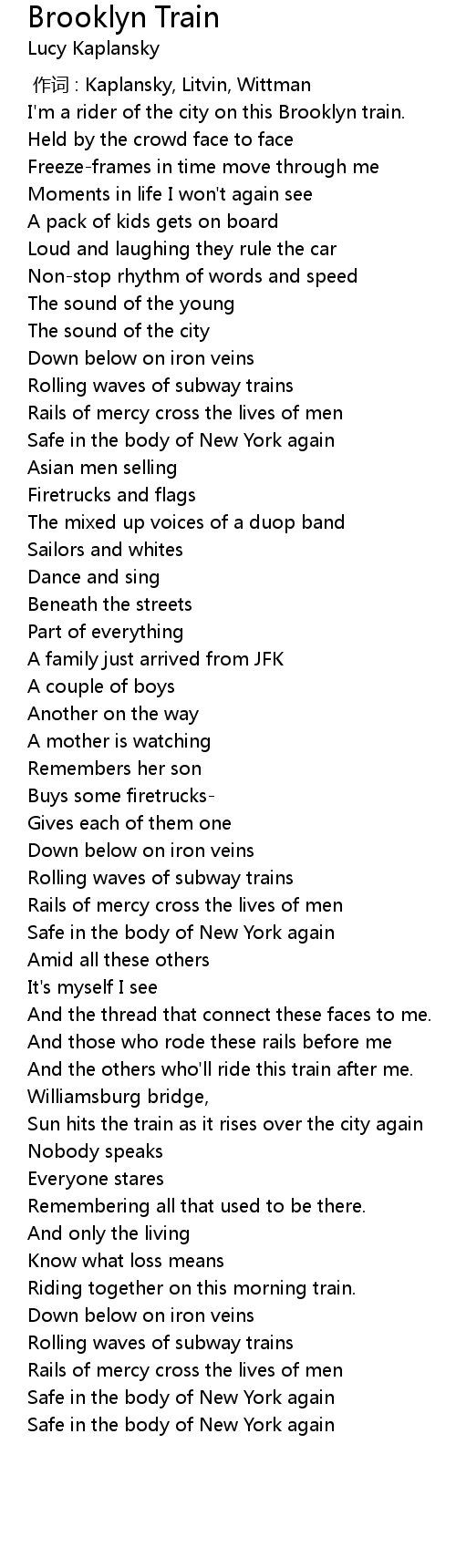 | 歌曲 | Brooklyn Train |