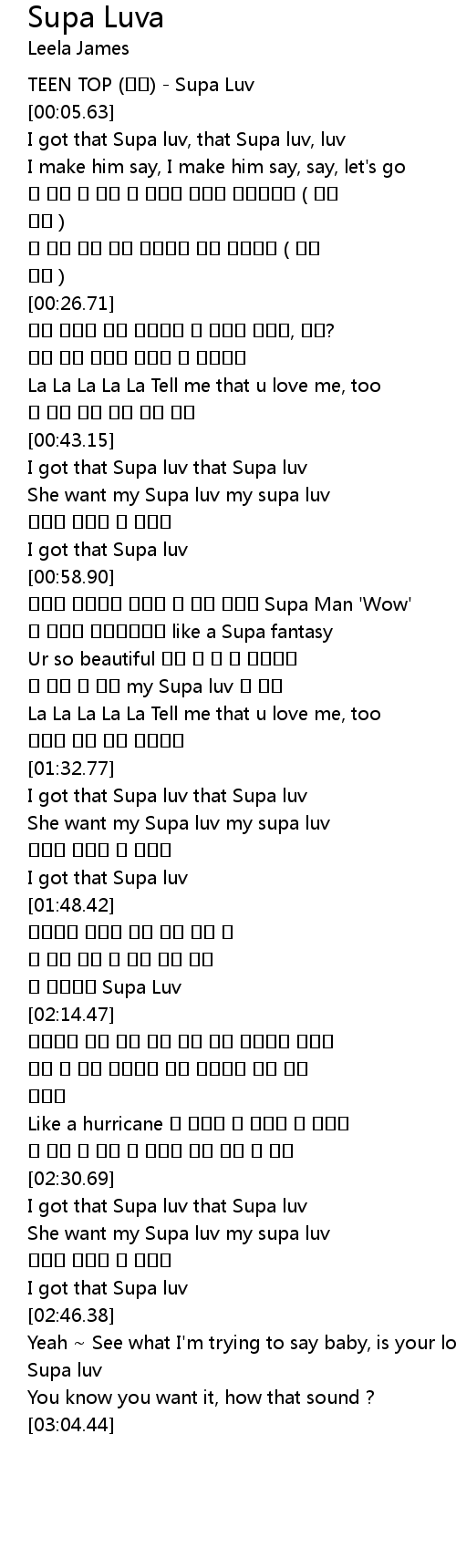 | [00:01.63] | TEEN TOP (틴탑) - Supa Luv |