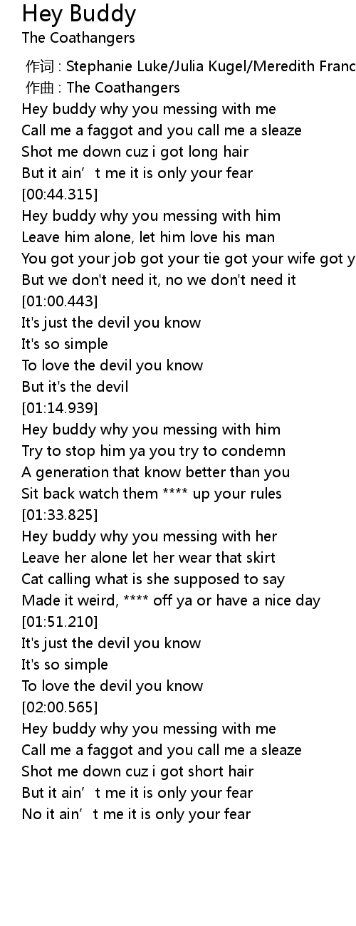 | [00:32.209] | Hey buddy why you messing with me |