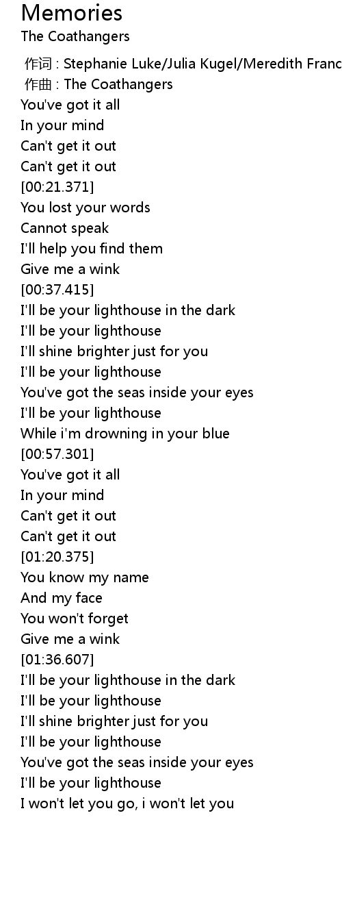 | [00:37.907] | I'll be your lighthouse in the dark |
