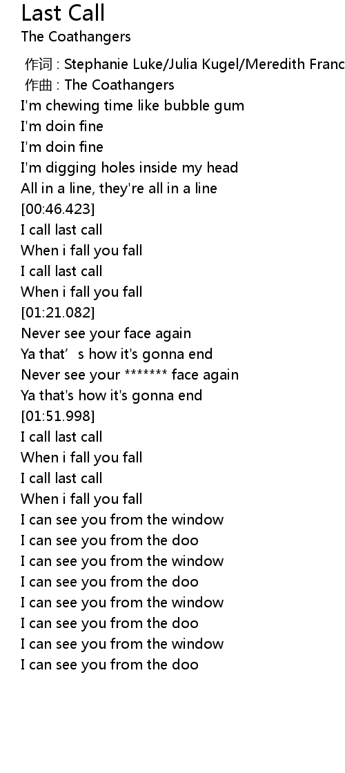| [00:01.000] | 作曲 : The Coathangers |