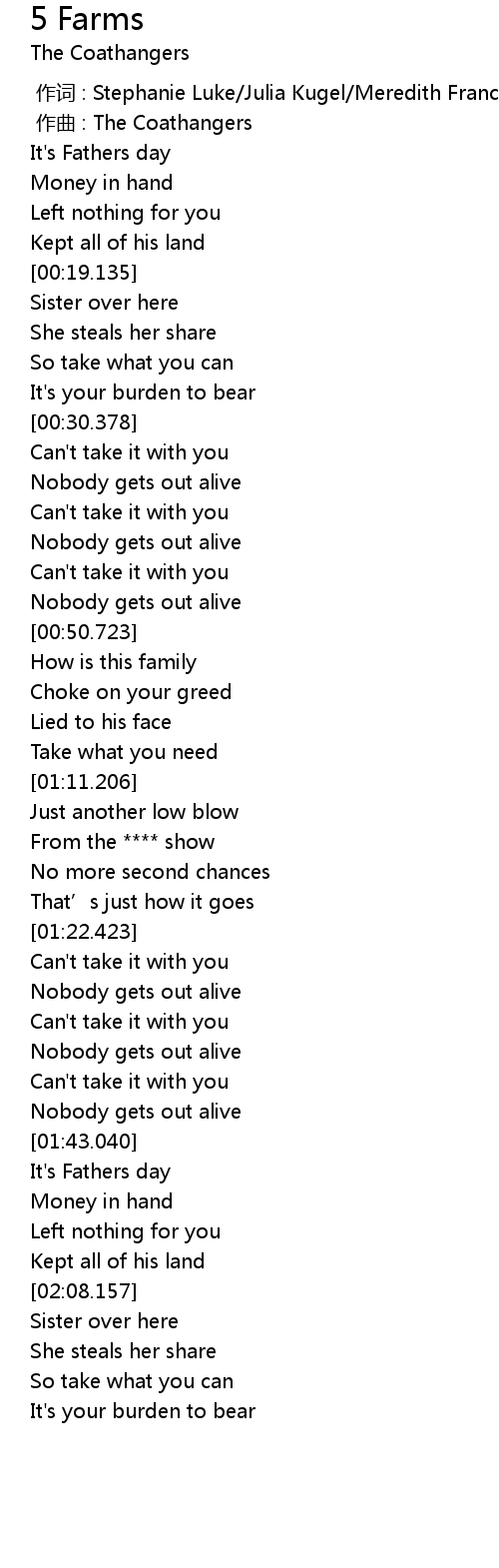 | [00:01.000] | zuò qǔ : The Coathangers |
