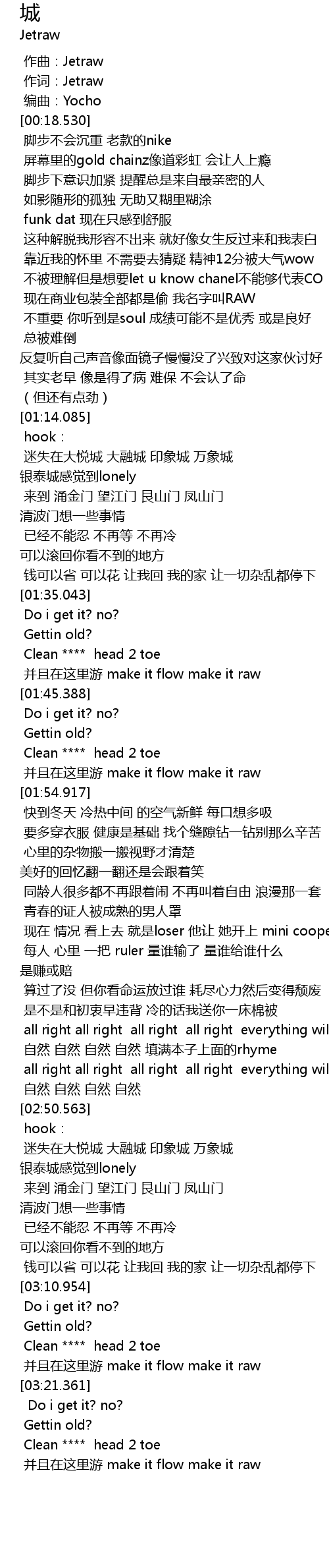 | [02:52.083] | 迷失在大悦城 大融城 印象城 万象城 银泰城感觉到lonely |