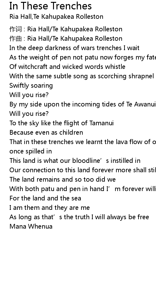 | 作词 : Ria Hall/Te Kahupakea Rolleston | |