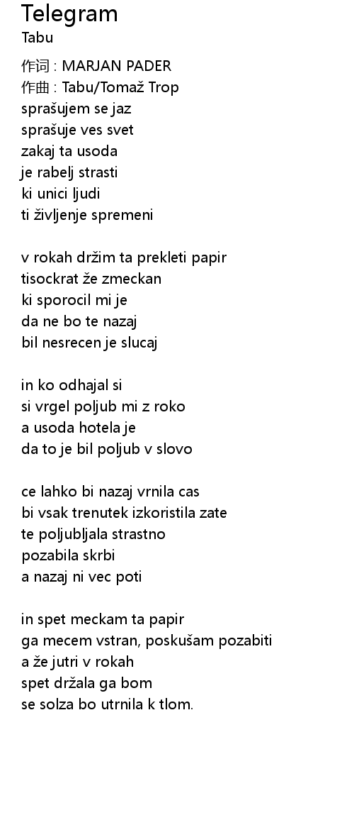 | 作曲 : Tabu/Tomaž Trop | |