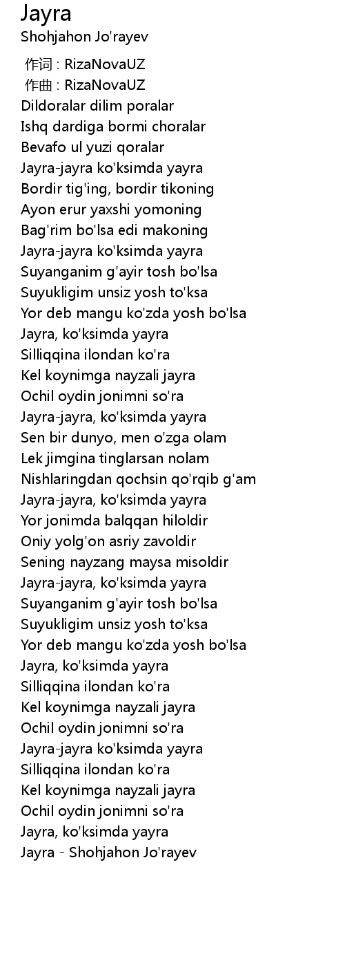 | [03:46.14] | Jayra - Shohjahon Jo'rayev |