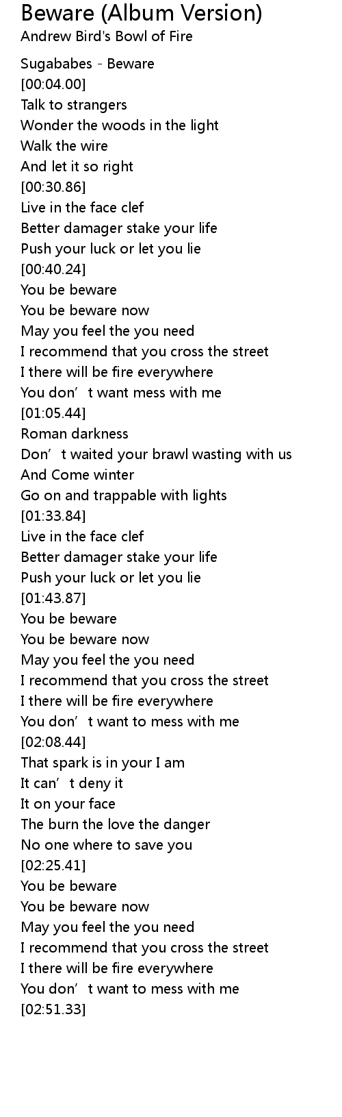 | [01:18.76] | Don’t waited your brawl wasting with us |