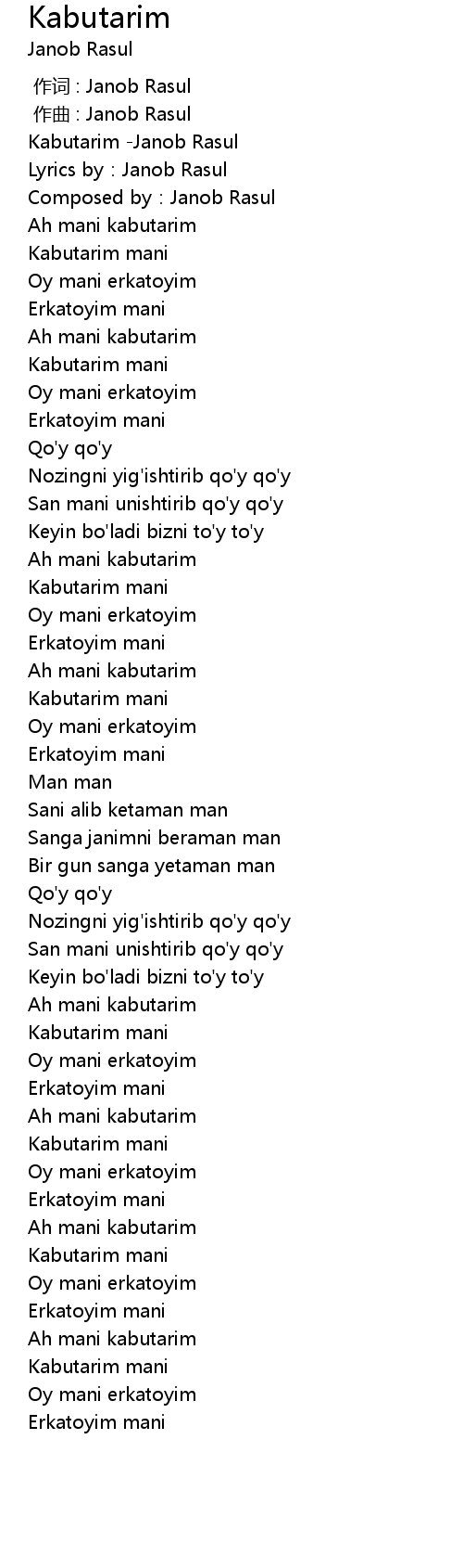 | [00:00.499] | Kabutarim Janob Rasul |