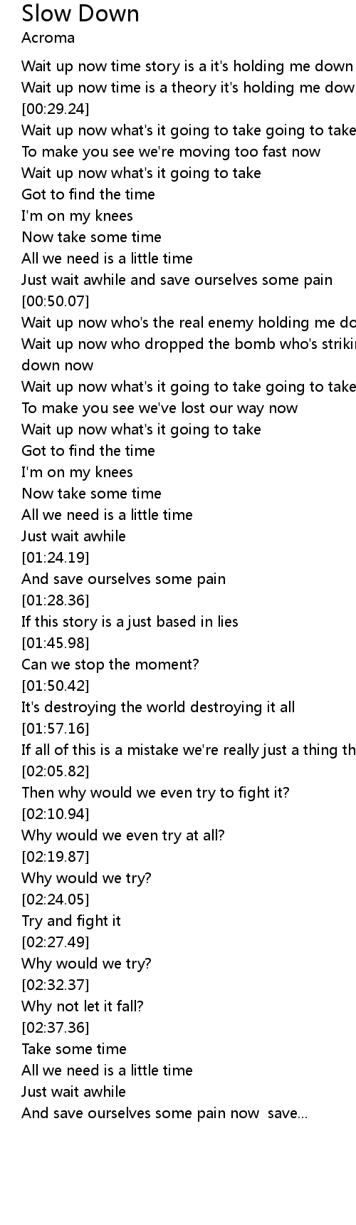 | [00:32.35] | To make you see we're moving too fast now |