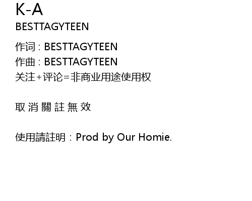 | shǐ yòng qǐng zhù míng: Prod by Our Homie. |