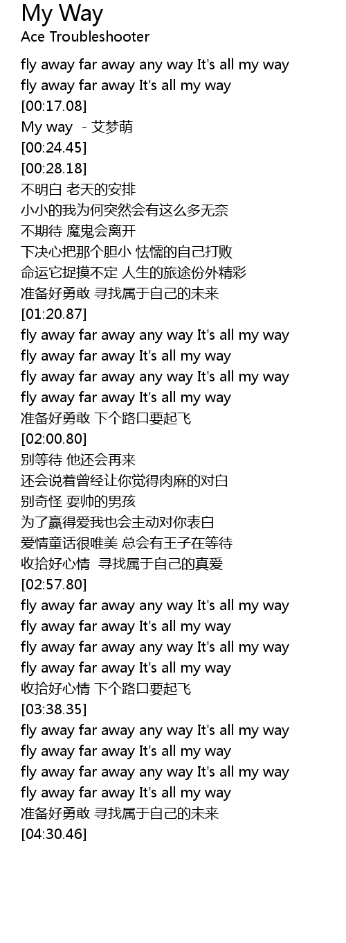 | [02:58.66] | fly away far away any way It's all my way |