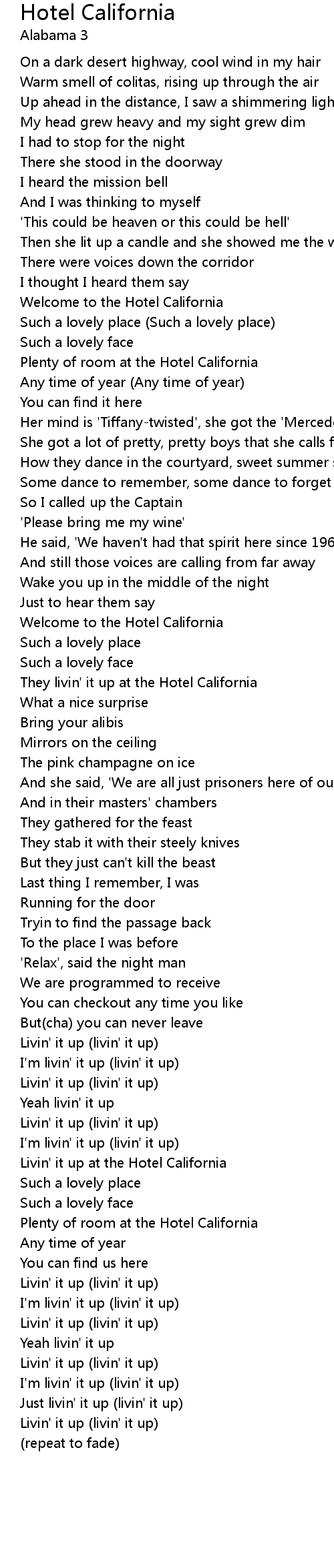 | Welcome to the Hotel California | |