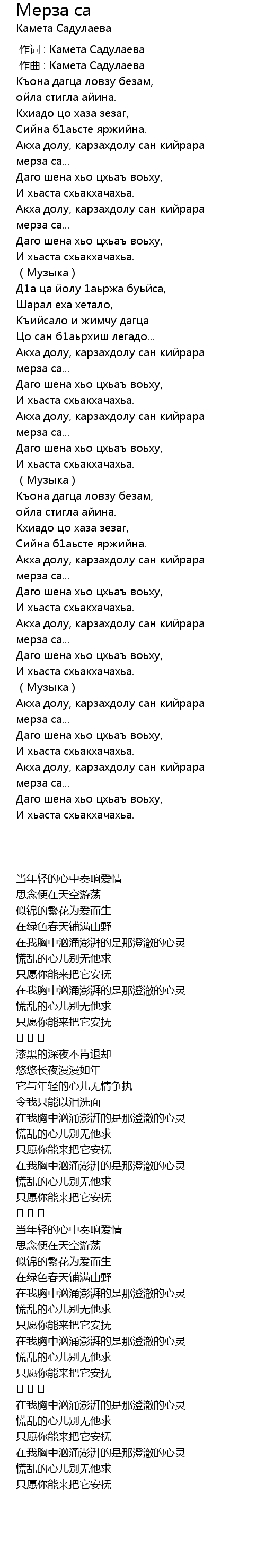 | [00:01.000] | 作曲 : Камета Садулаева |