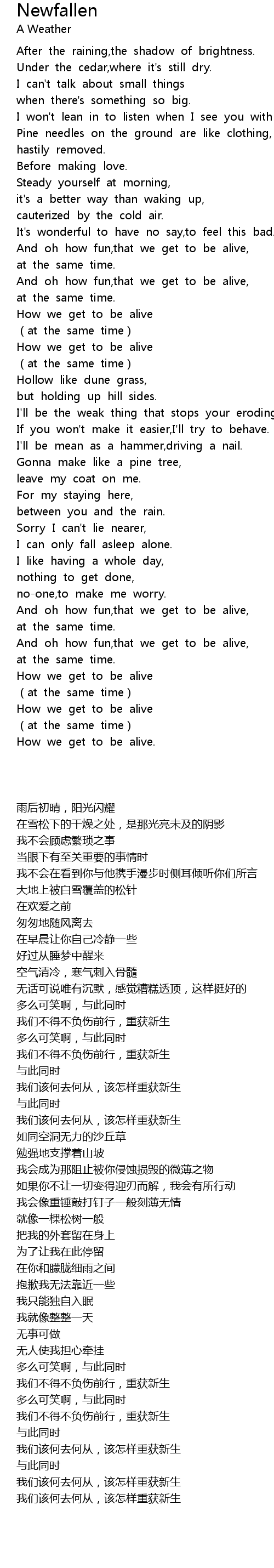 | [01:35.841] | And oh how fun,that we get to be alive, |