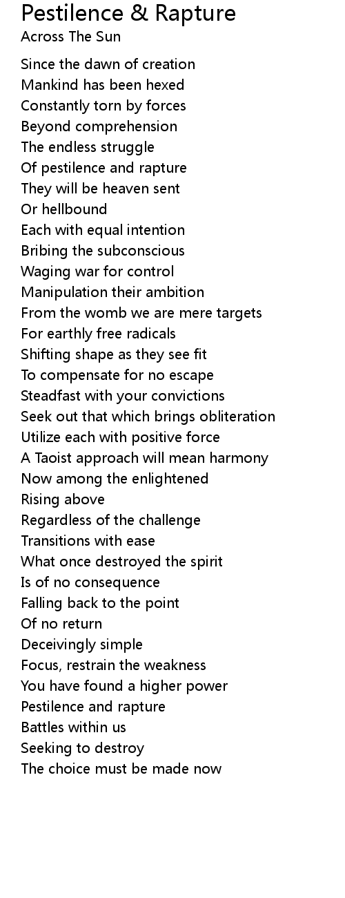 Pestilence and rapture |