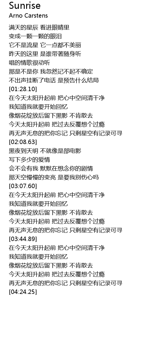 | [04:05.52] | 今天太阳升起前 把过去反覆想个过瘾 |