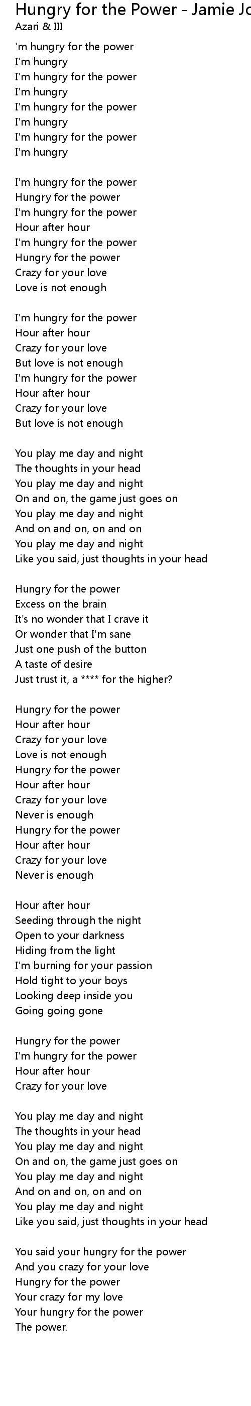 I'm hungry for the power |