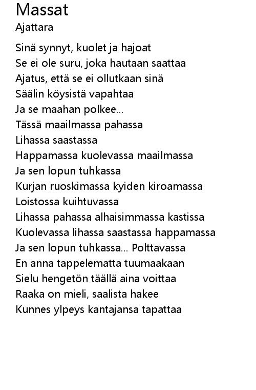 | Ja sen lopun tuhkassa... Polttavassa | |