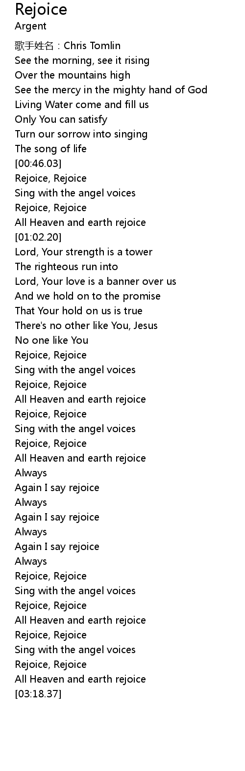 | [00:13.31] | gē shǒu xìng míng: Chris Tomlin |
