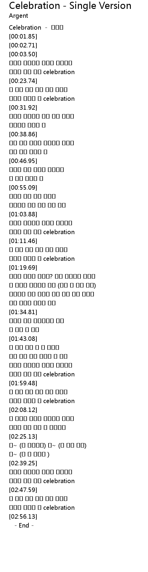 | [02:03.45] | 오늘이 마지막 날 celebration |