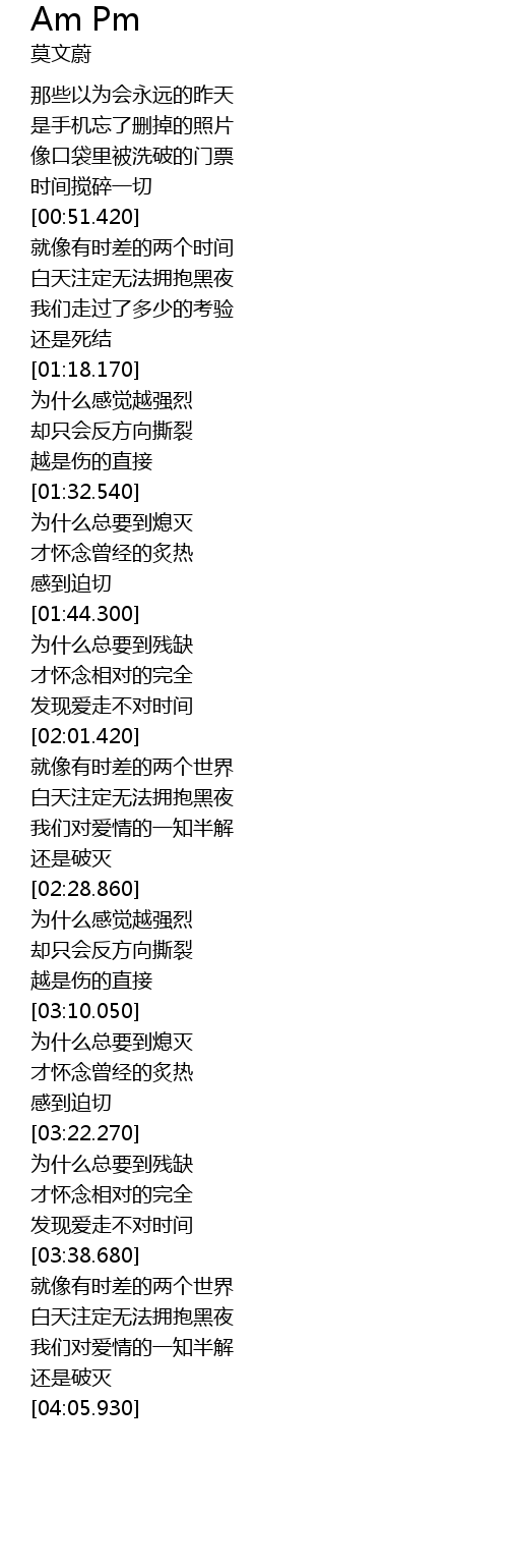 | [03:47.750] | 白天注定无法拥抱黑夜 |