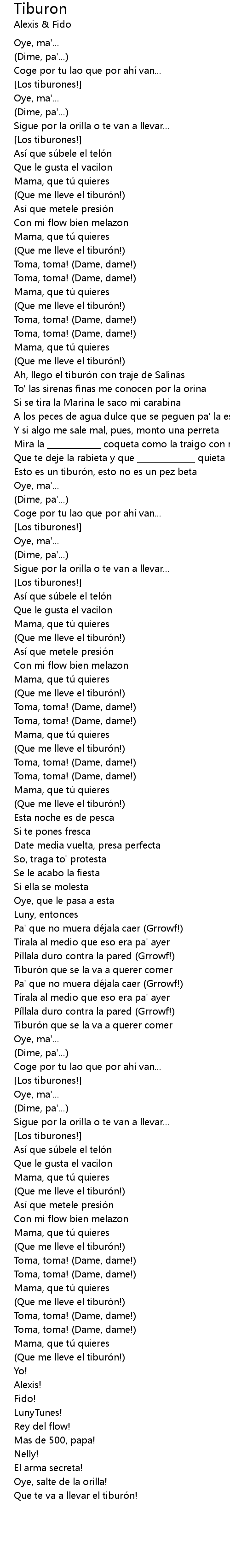 | Que te va a llevar el tiburó n! |