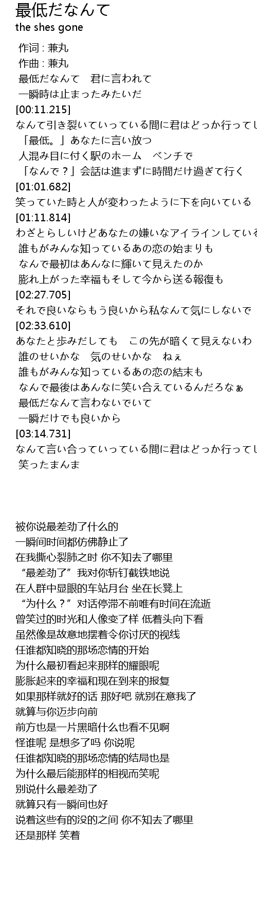 | [00:41.560] | “最差劲了”我对你斩钉截铁地说 |