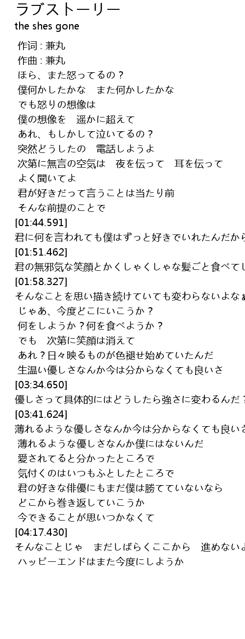 | [04:29.867] | ハッピーエンドはまた今度にしようか |