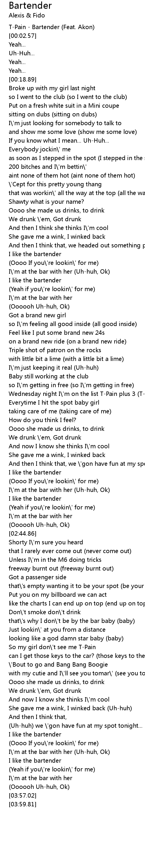 [00:00.00] T-Pain - Bartender (Feat. Akon)