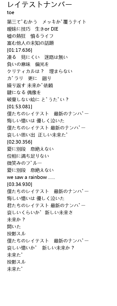 | [03:58.895] | 君たちのレイテスト 最新のナンバー |