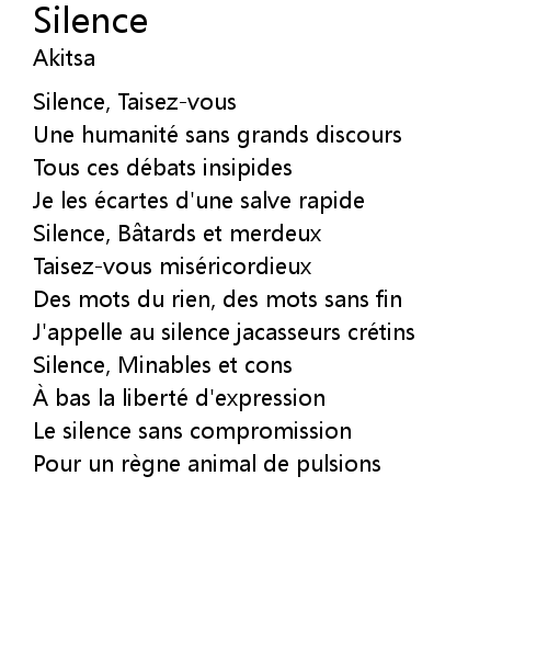 | J' appelle au silence jacasseurs cre tins | |