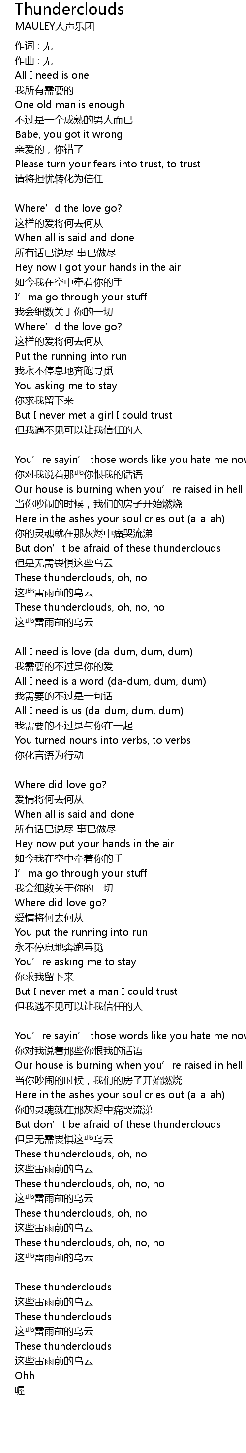 | 歌曲 | Thunderclouds |