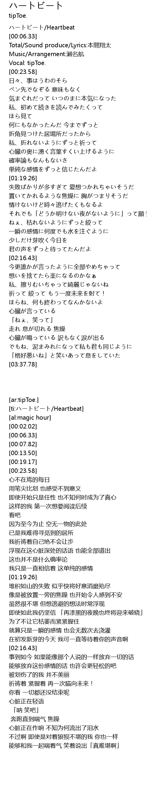 | [00:02.02] | ハートビート/Heartbeat |