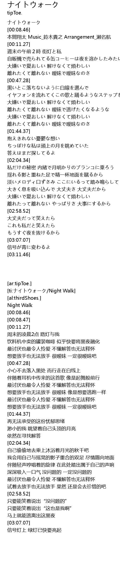 | [00:02.68] | ナイトウォーク |