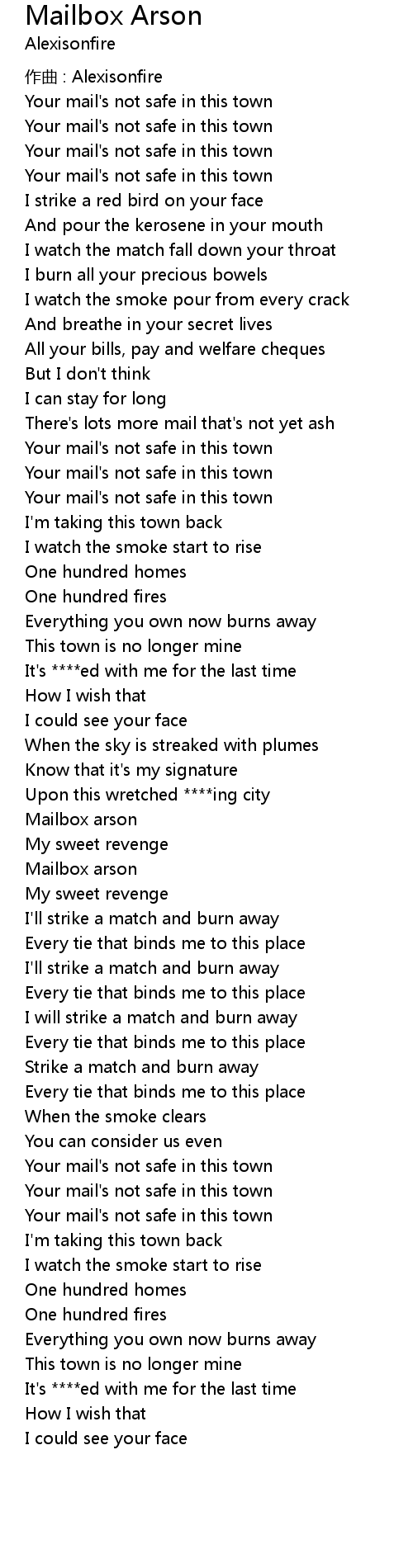 | 歌曲 | Mailbox Arson |