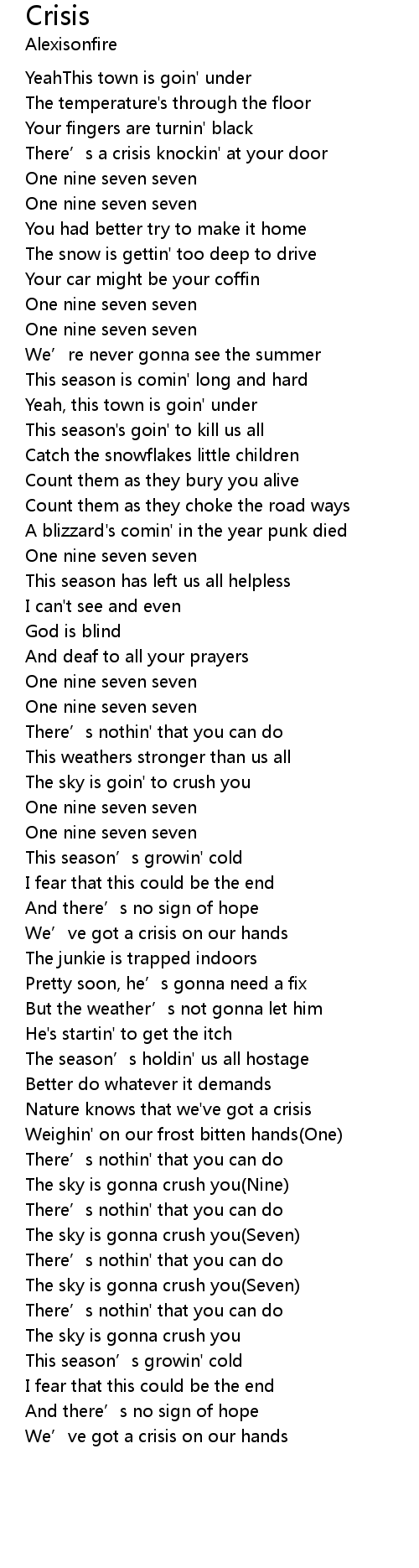 | There' s a crisis knockin' at your door | |