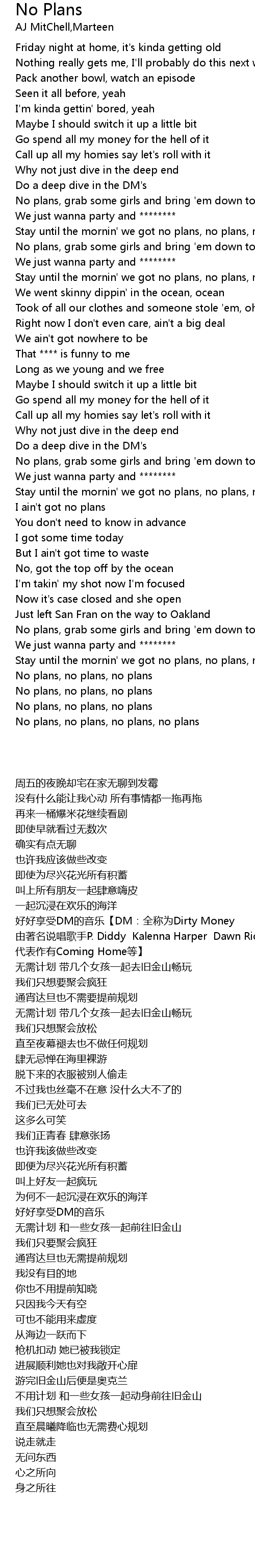 Stay until the mornin' we got no plans, no plans, no plans |