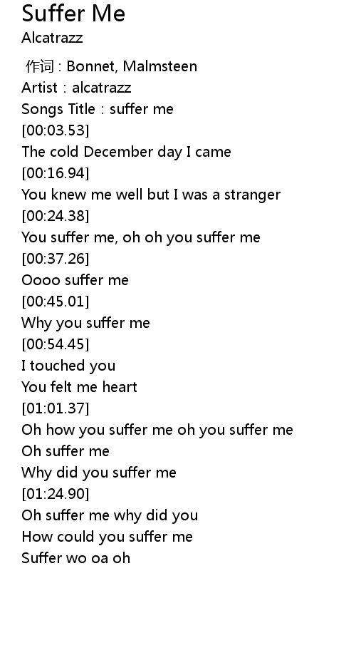 | [01:14.46] | Oh how you suffer me oh you suffer me |