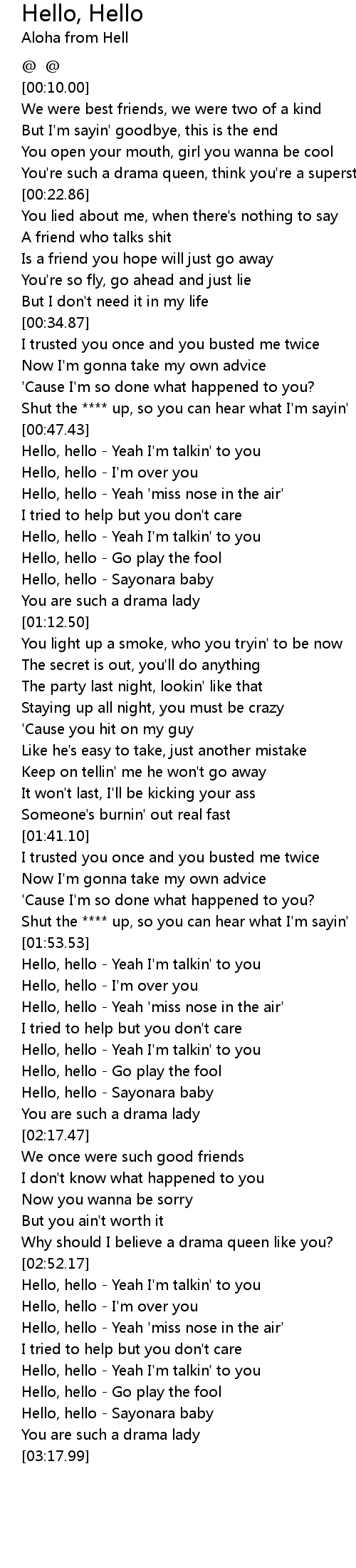 Hello, hello - I'm over you |