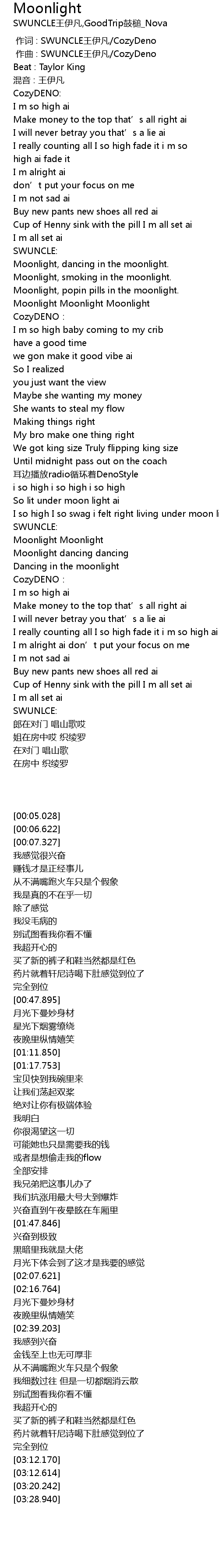 | [00:00.000] | 作词 : SWUNCLE王伊凡/CozyDeno |