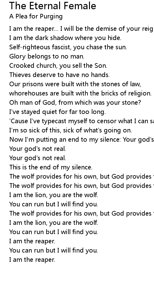 I am the reaper... I will be the demise of your reign. |