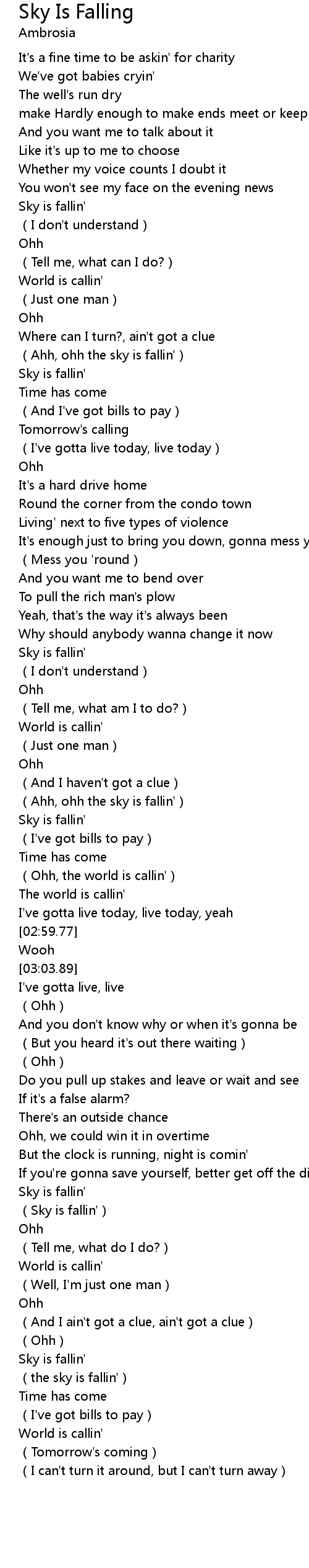 | [01:17.52] | Ahh, ohh the sky is fallin' |