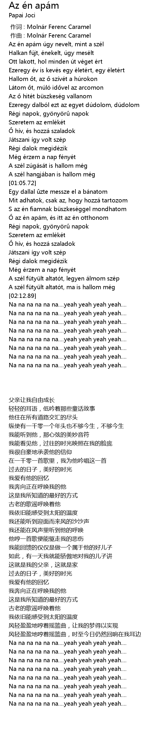 | [01:41.84] | az e n apa m, e s itt az e n otthonom |