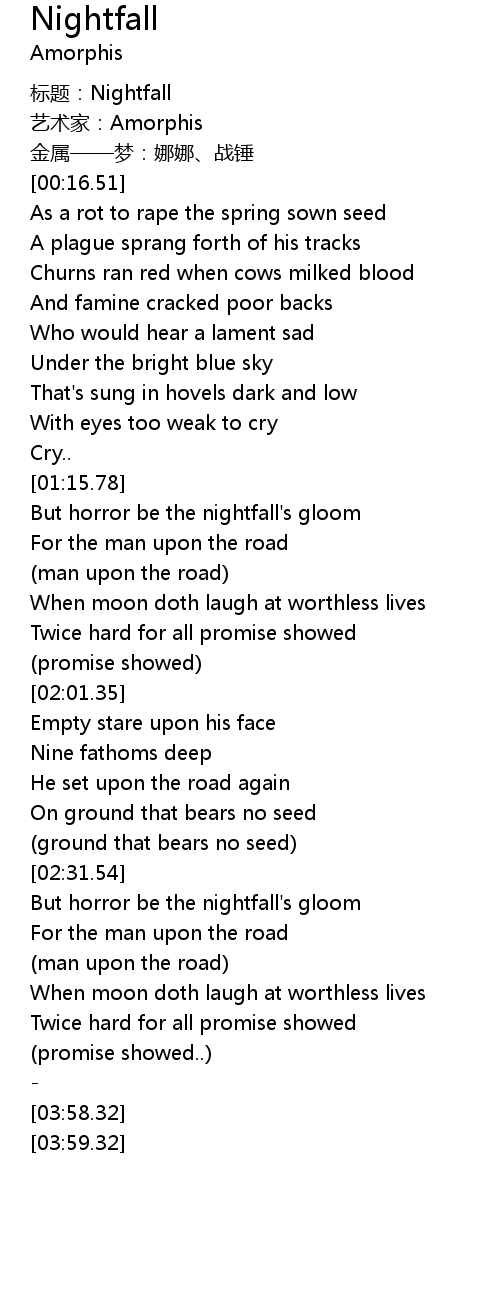 | [00:00.00] | biāo tí: Nightfall |