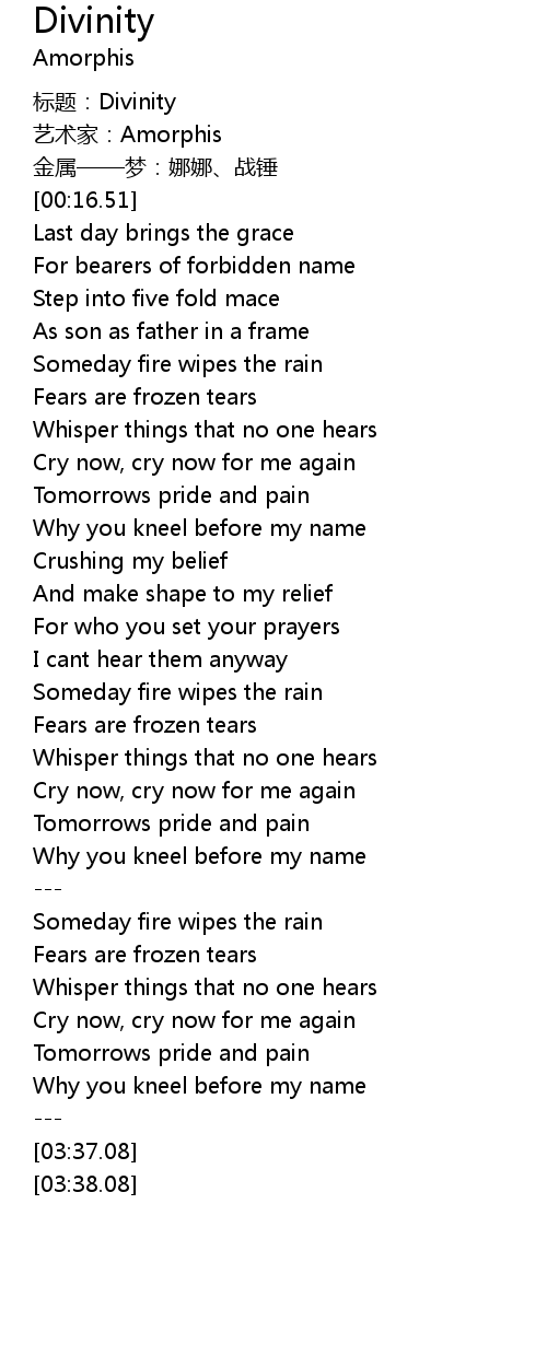 | [00:00.00] | biao ti: Divinity |