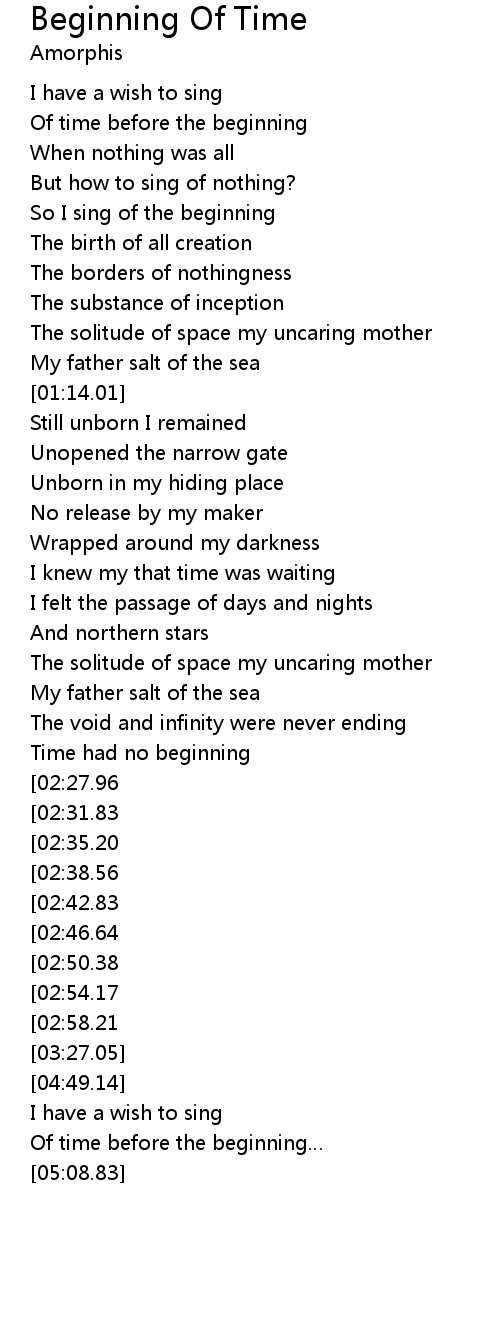 | [00:33.14] | Of time before the beginning |