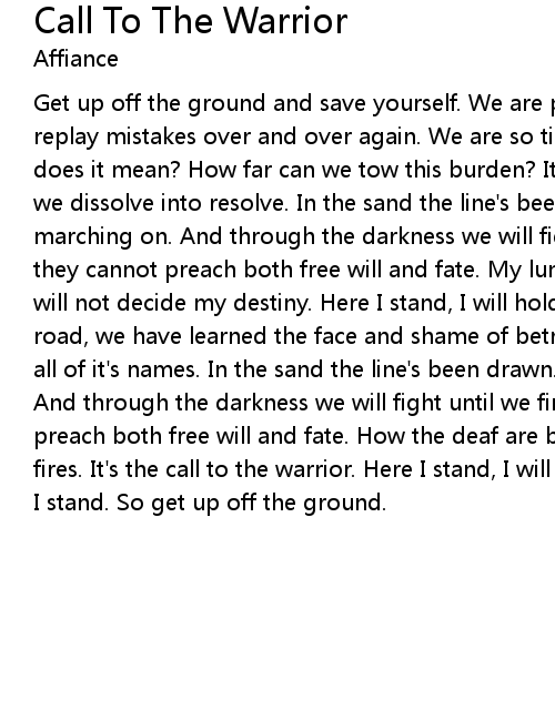 fires. It's the call to the warrior. Here I stand, I will hold my ground. Here |