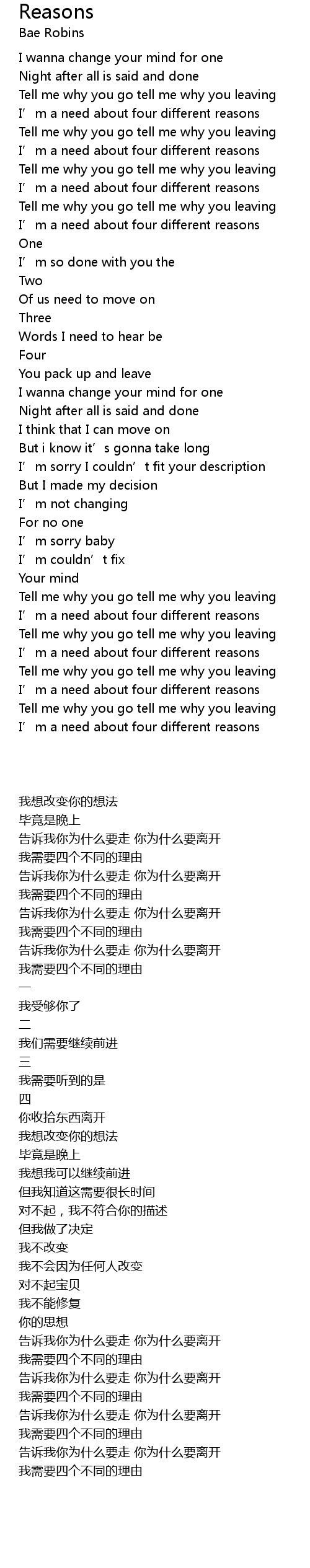 | 歌曲 | Reasons |
