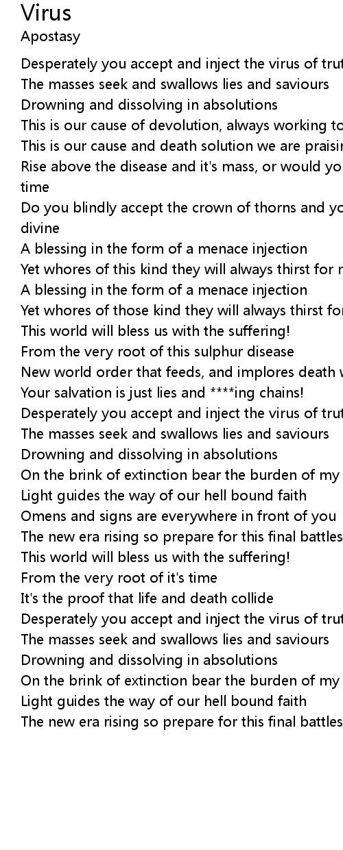 Rise above the disease and it's mass, or would you rather crawl in the ashes of time |