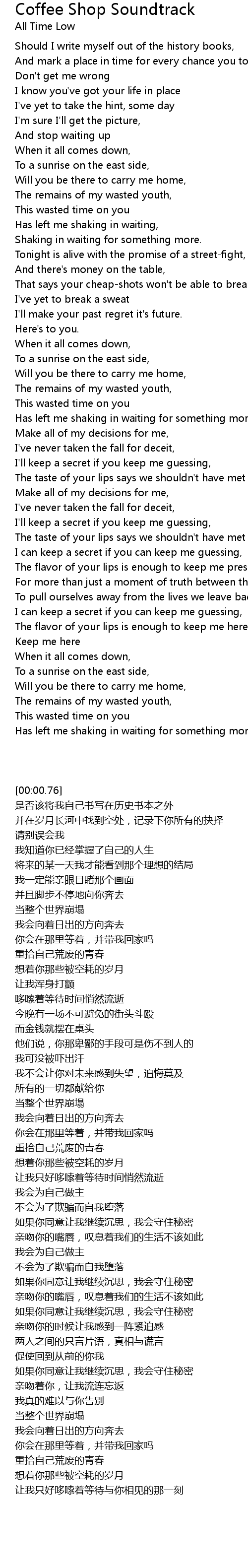 The flavor of your lips is enough to keep me here |